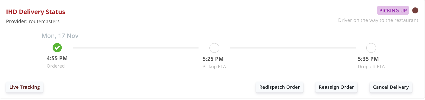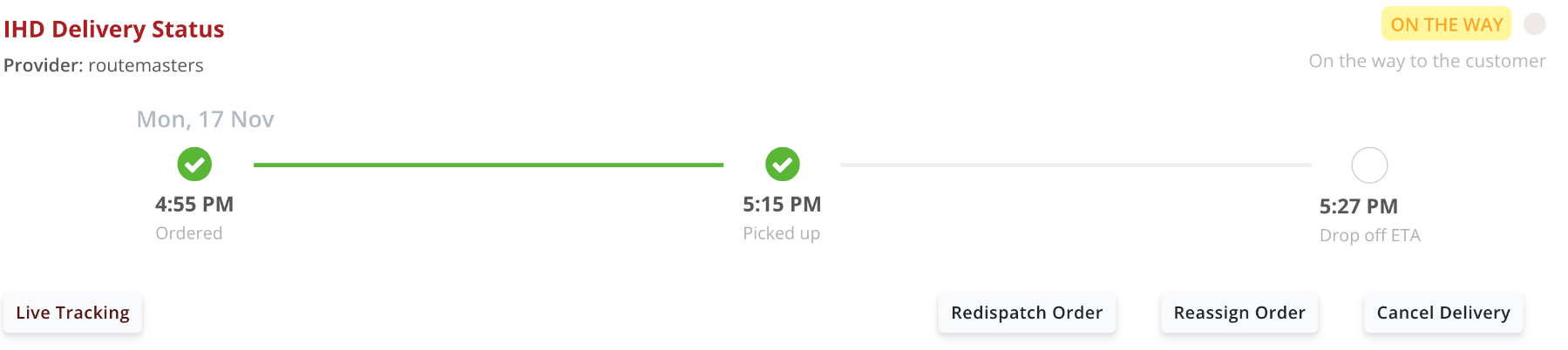 you can Redispatch, Reassign, or Cancel active deliveries in real time — but use these