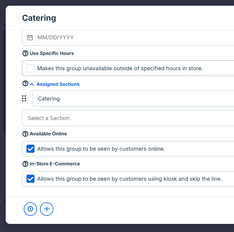 Assign any catering "Sections" to this group: