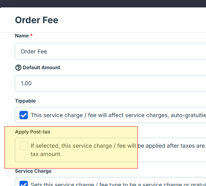 Make sure the Order Fee is NOT checked "apply post tax" (this will tax our order fee)