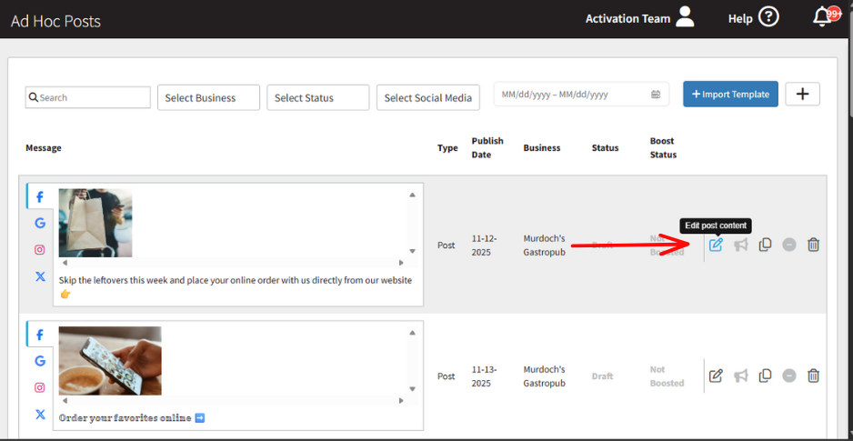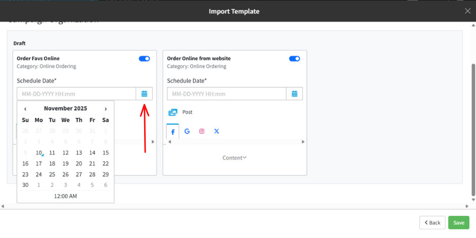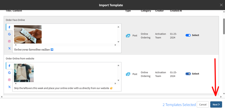 Post Templates give you the ability to create and schedule a campaign based on your chosen theme, such as online ordering or catering.